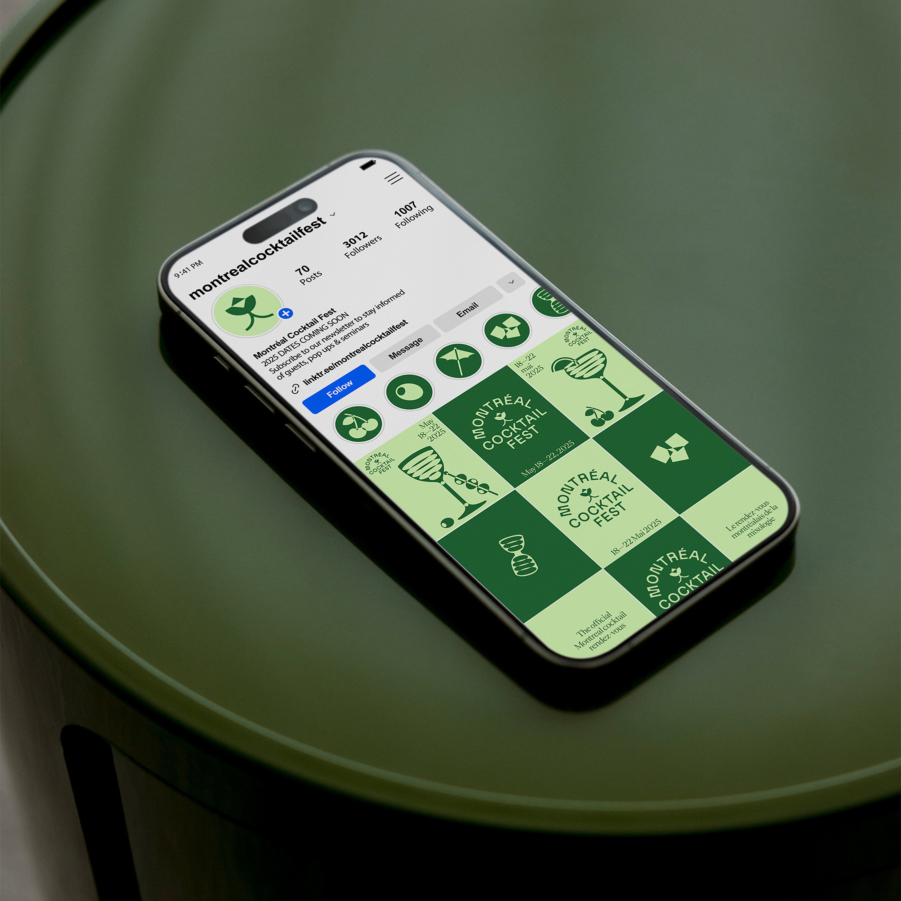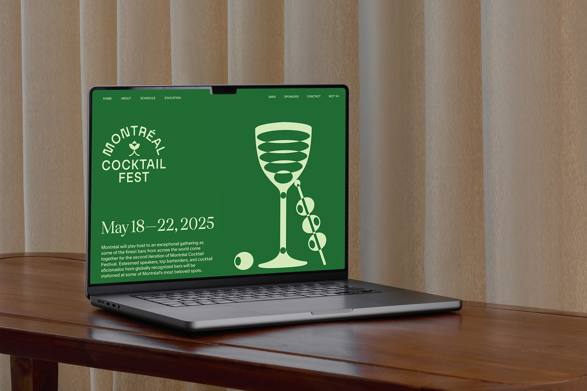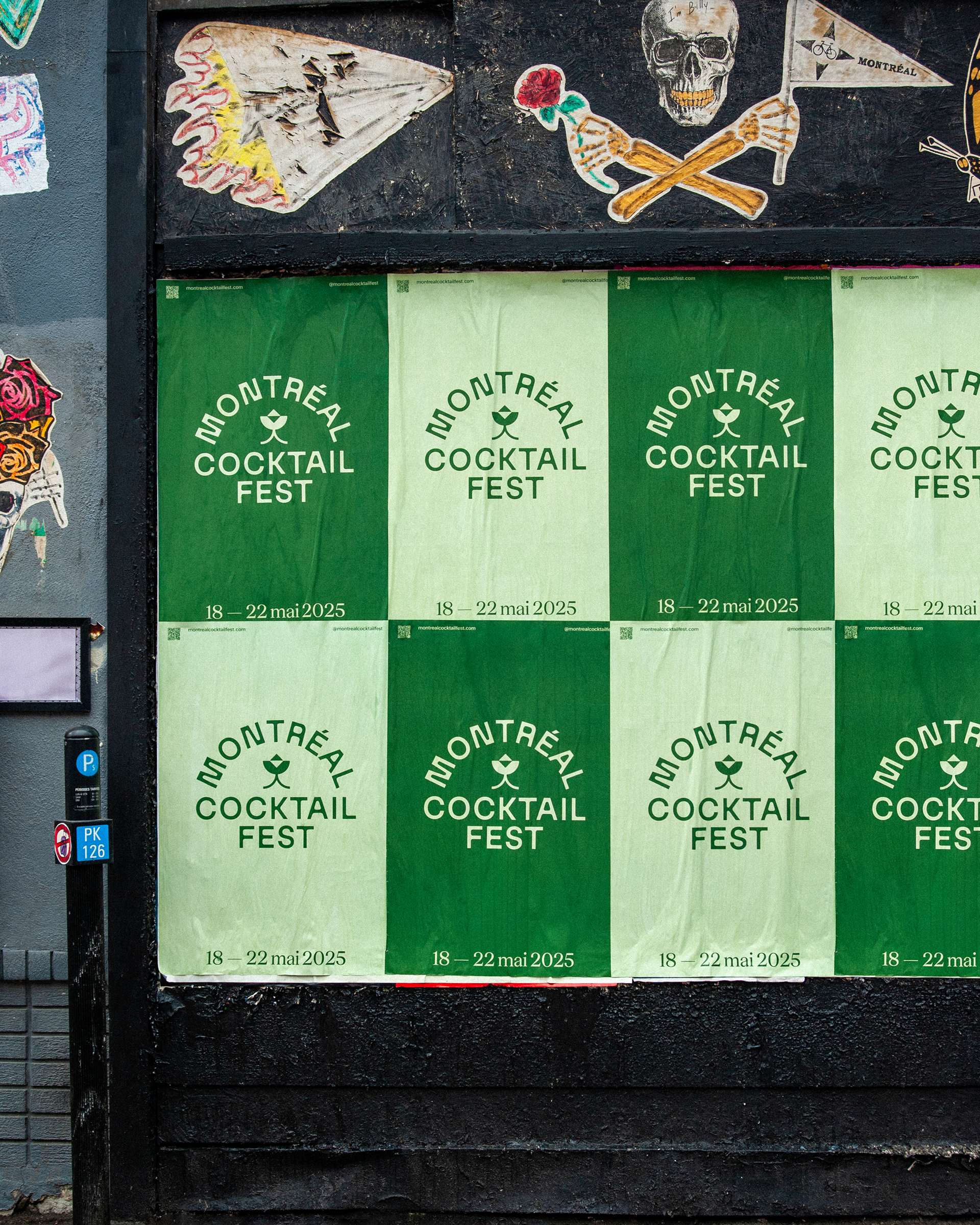 Pour sa deuxième édition, le Montréal Cocktail Fest se dote d'une identité qui reflète la curiosité et l'enthousiasme du monde de la mixologie. Alliant acteurs de l'industrie et amateurs de cocktails, l'évènement se veut à la fois accessible et pointu. Le contraste des verts rappelle la fraîcheur d'un mojito, alors que le style illustratif rend hommage aux affiches Campari des années 1920. Projet réalisé chez Bzoing.